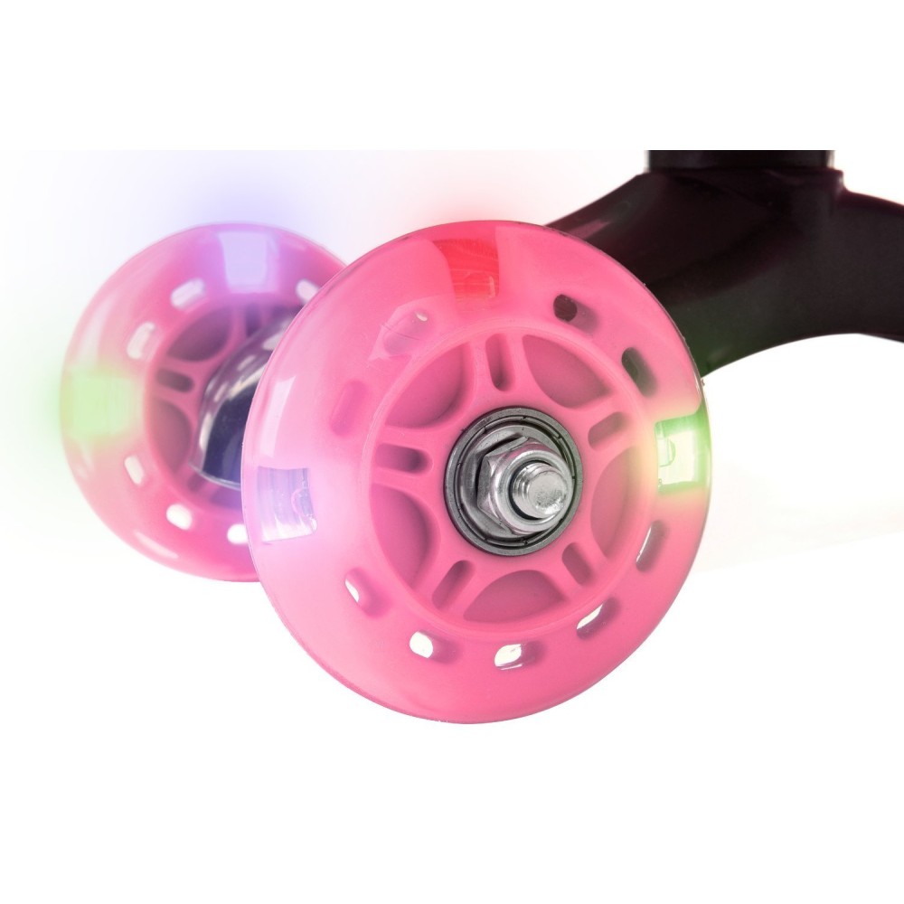 - kółka LED przykuwają wzrok i zwiększają widoczność dziecka,