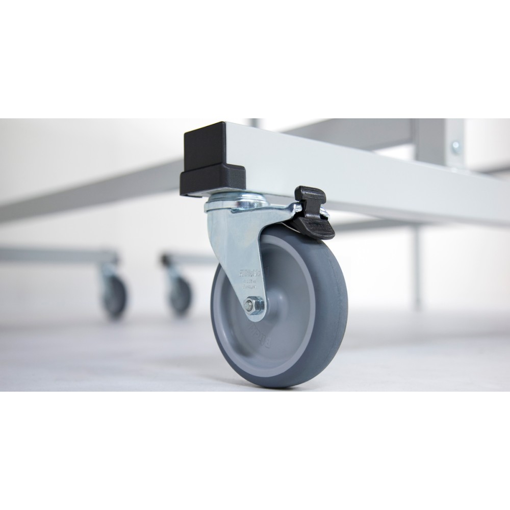 - 4 skrętne kółka z gumowanym bieżnikiem o średnicy 100mm, w tym 2 blokowane